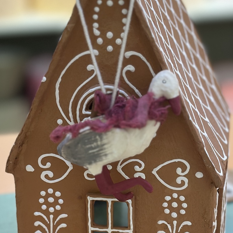 Storken har siddet på de danske juletræer i årevis - Her i en fin udgave med rødt bånd