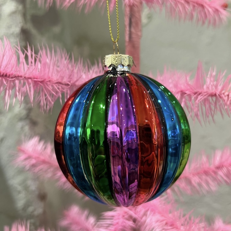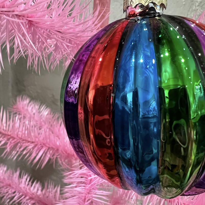 Striber er flotte på julekugler og giver liv med de vibrante farver - Her med en lilla stribe, der er den helt gamle julefarve
