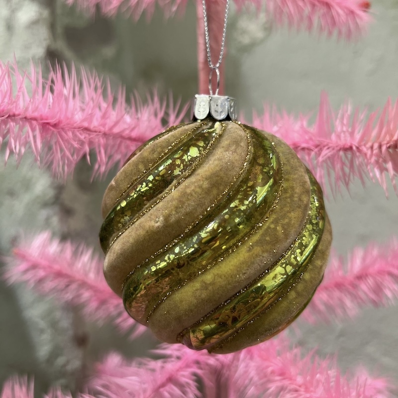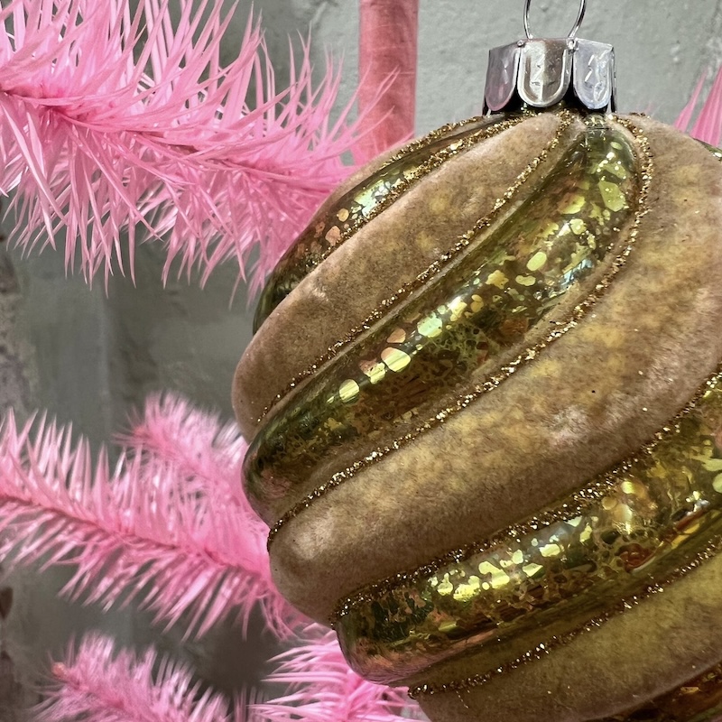 Eksklusivt udtryk med beige velourstriber kombineret med limegrøn