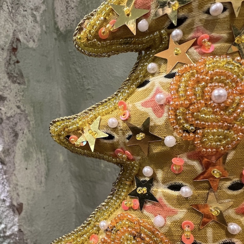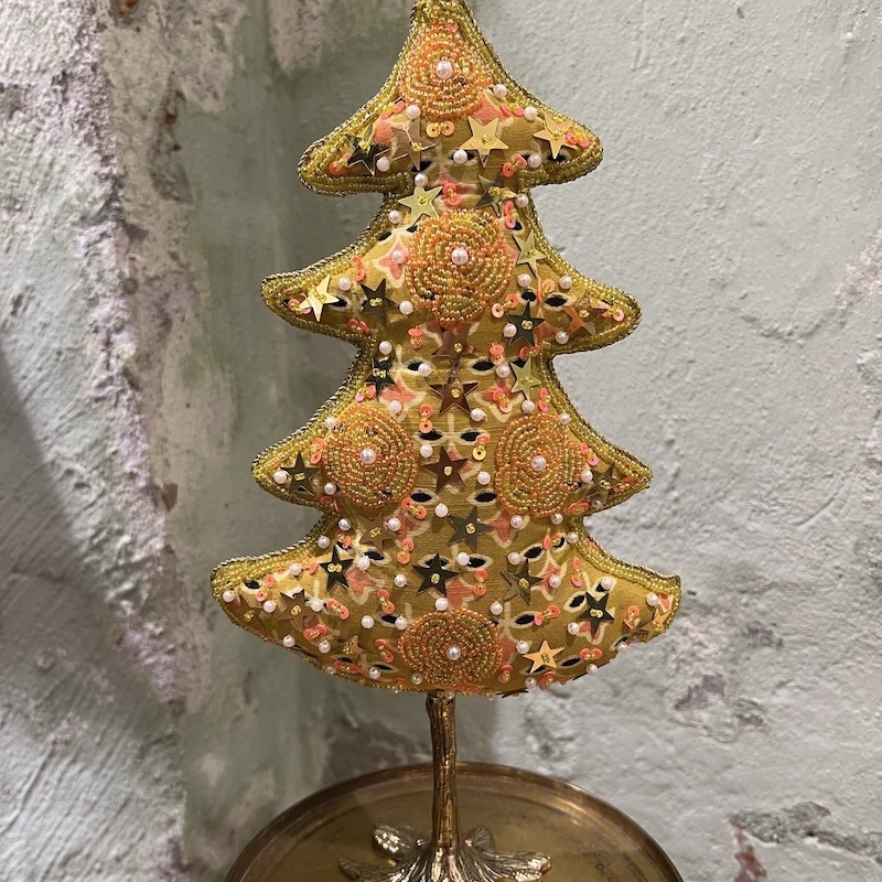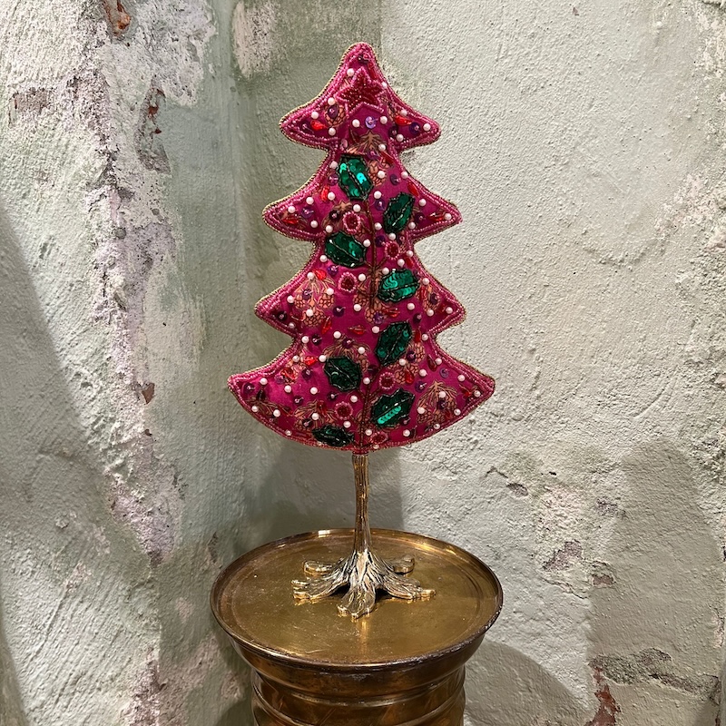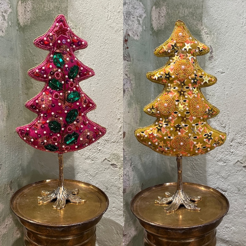 Flotte juletræer i pink og gul flot sat op på messing stamme - Skab en festlig og farverig jul, med disse flotte træer.