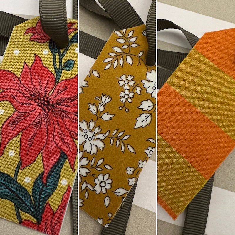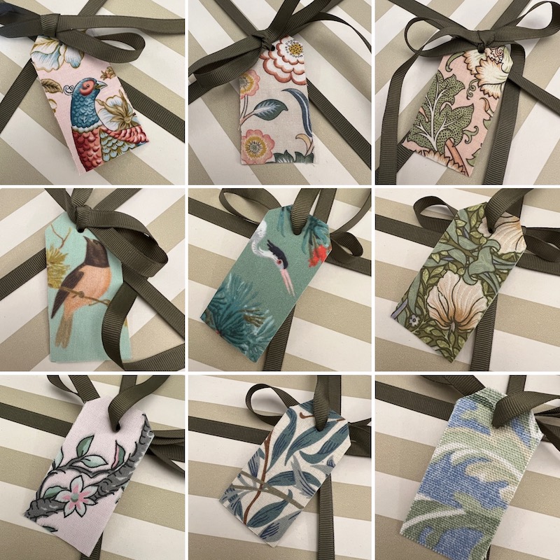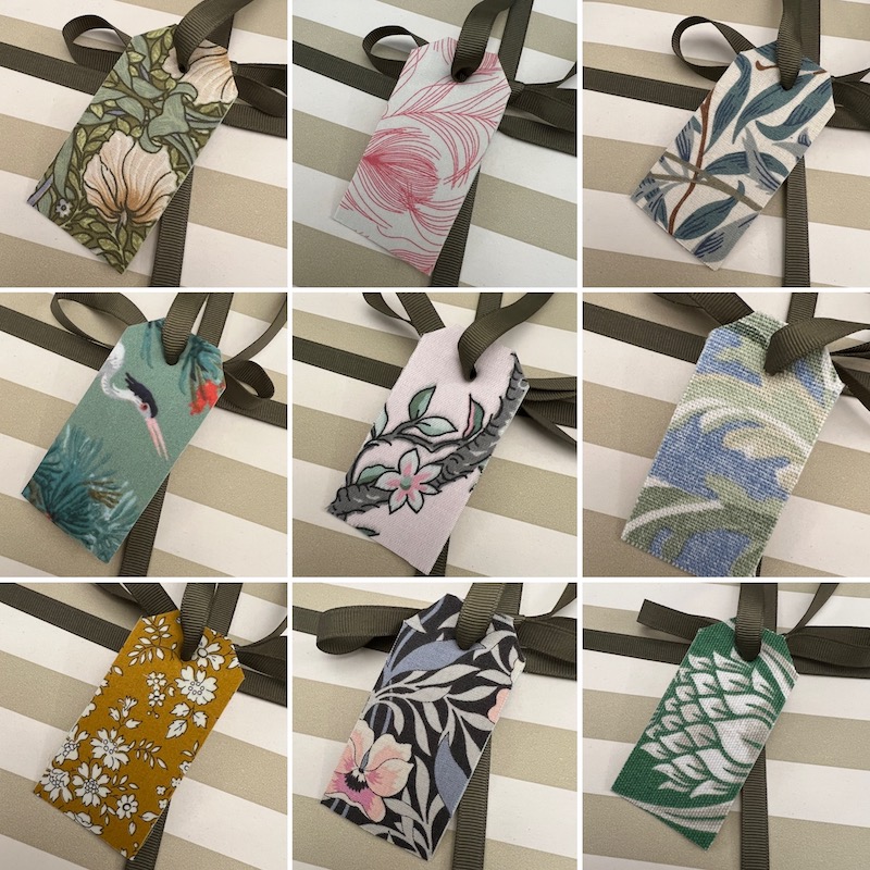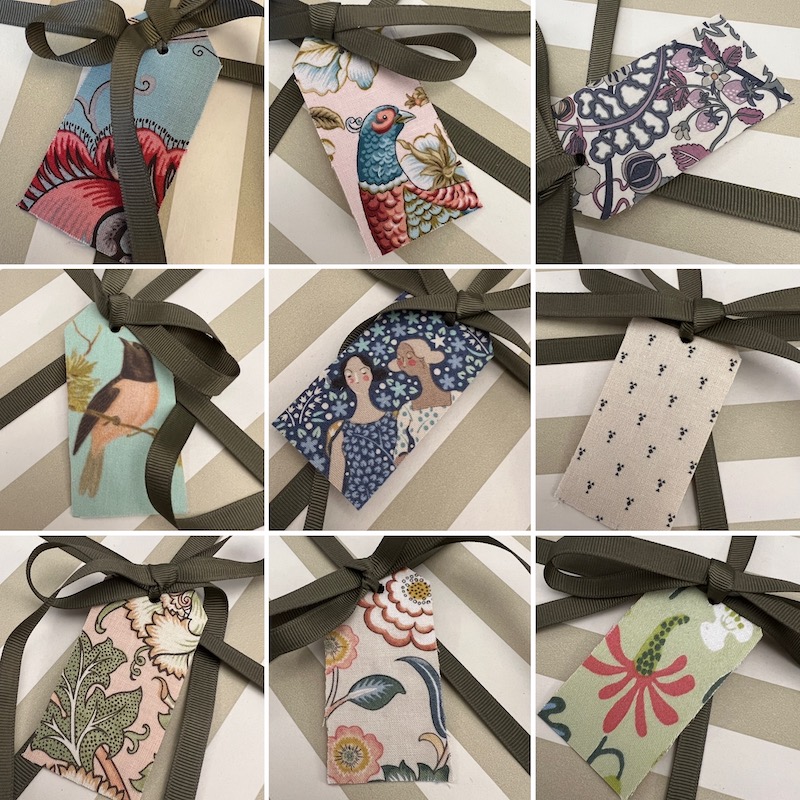 Mærket har tekstil forside, fast midte og en fin papirbagside, hvor der kan skrives på og selvfølgelig et lille hul til gavebåndet eller en lille snor.