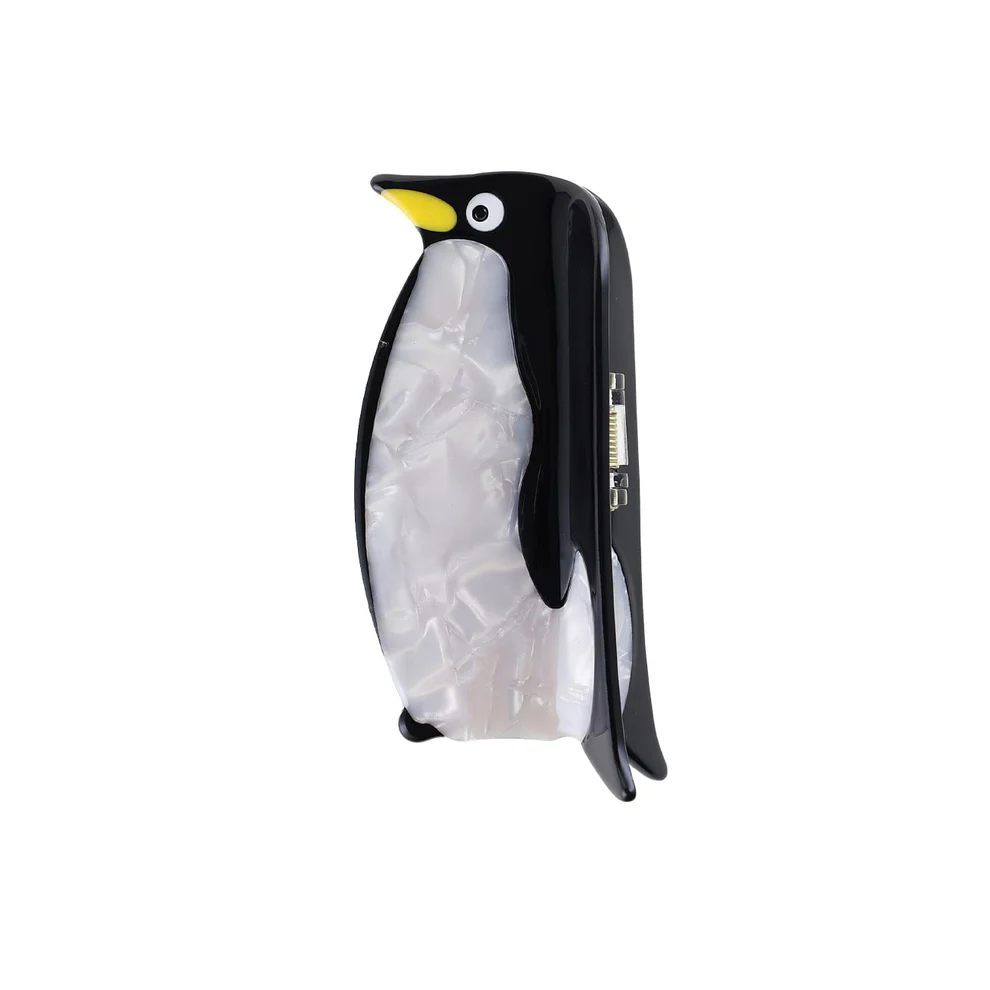 Gør din frisure lidt sjovere med denne unikke hårklemme formet som en sød pingvin. Den er udført i sort og hvid acetat med fine detaljer som næb, øjne og vinger – perfekt til dig, der elsker legende og karakterfuldt tilbehør.