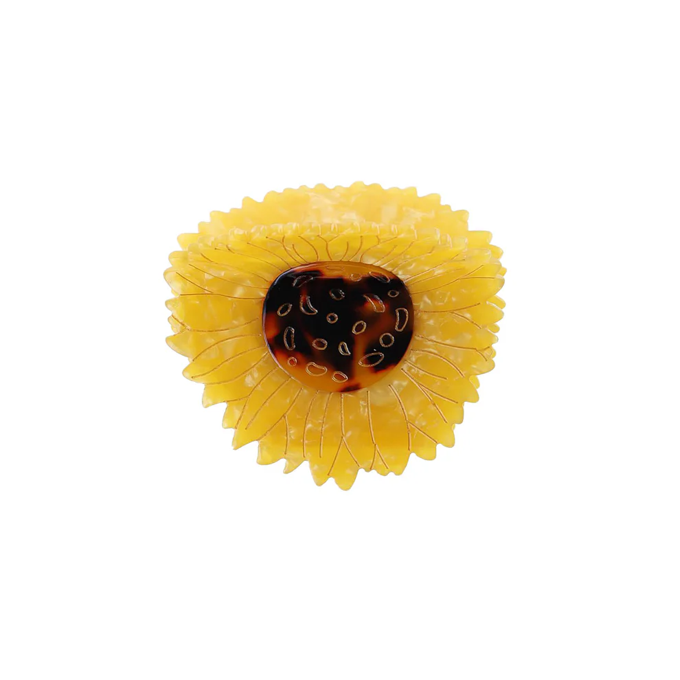 Bring solskin til din frisure med denne charmerende hårklemme formet som en solsikke. Den smukke gule acetat blomst med brun midte er både livlig og stilfuld – perfekt til at give dit look et glad og sommerligt præg.