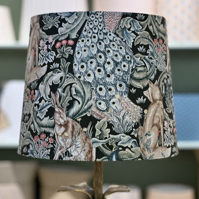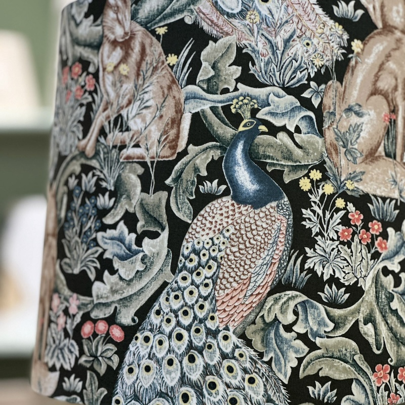 Håndlavet lampeskærm i tekstil NR 520 - Peacock and friends, William Morris