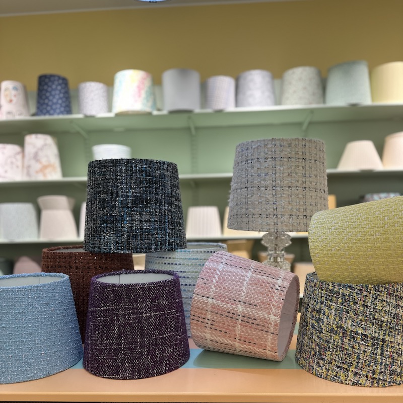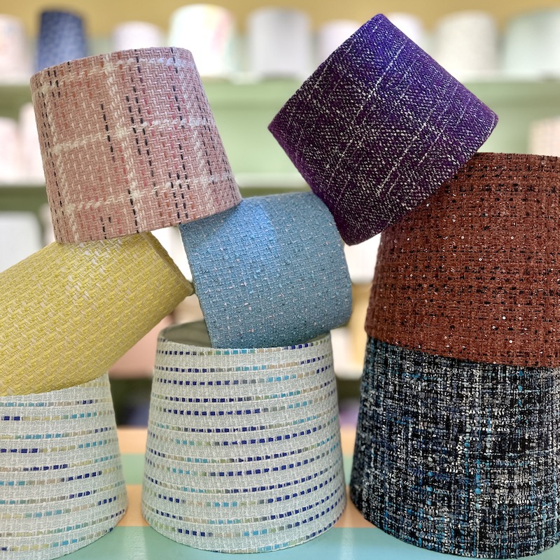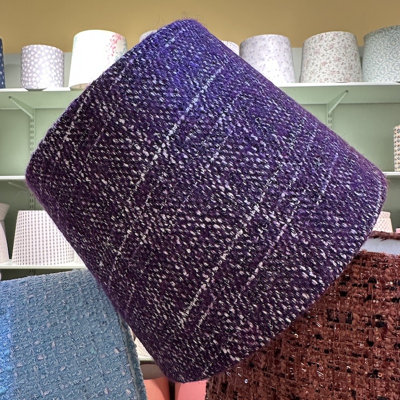 Mærk lilla boucle tilsat lys tråd - Vovet skærm, men i de rigtige omgivelser vil den tage alt opmærksomhed med sin forførende farve - Skærmen er en Empire lille og måler H20 Ø20/25