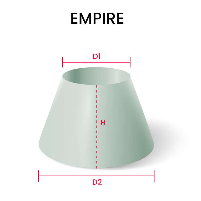 Vores lampeskærme laves i følgende modeller: Coolie, Cylinder og Empire (se disse under produktbillederne). Hver model laves i en række forskellige mål, så den passer lige præcis til din lampes størrelse og facon.