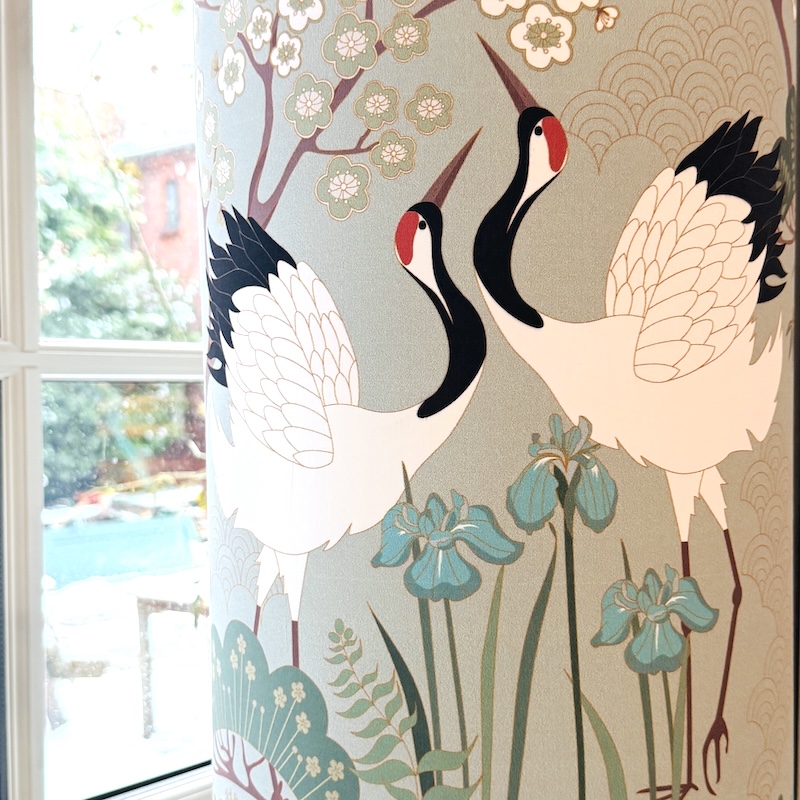 Håndlavet lampeskærm i tekstil NR 539 - Dancing Cranes