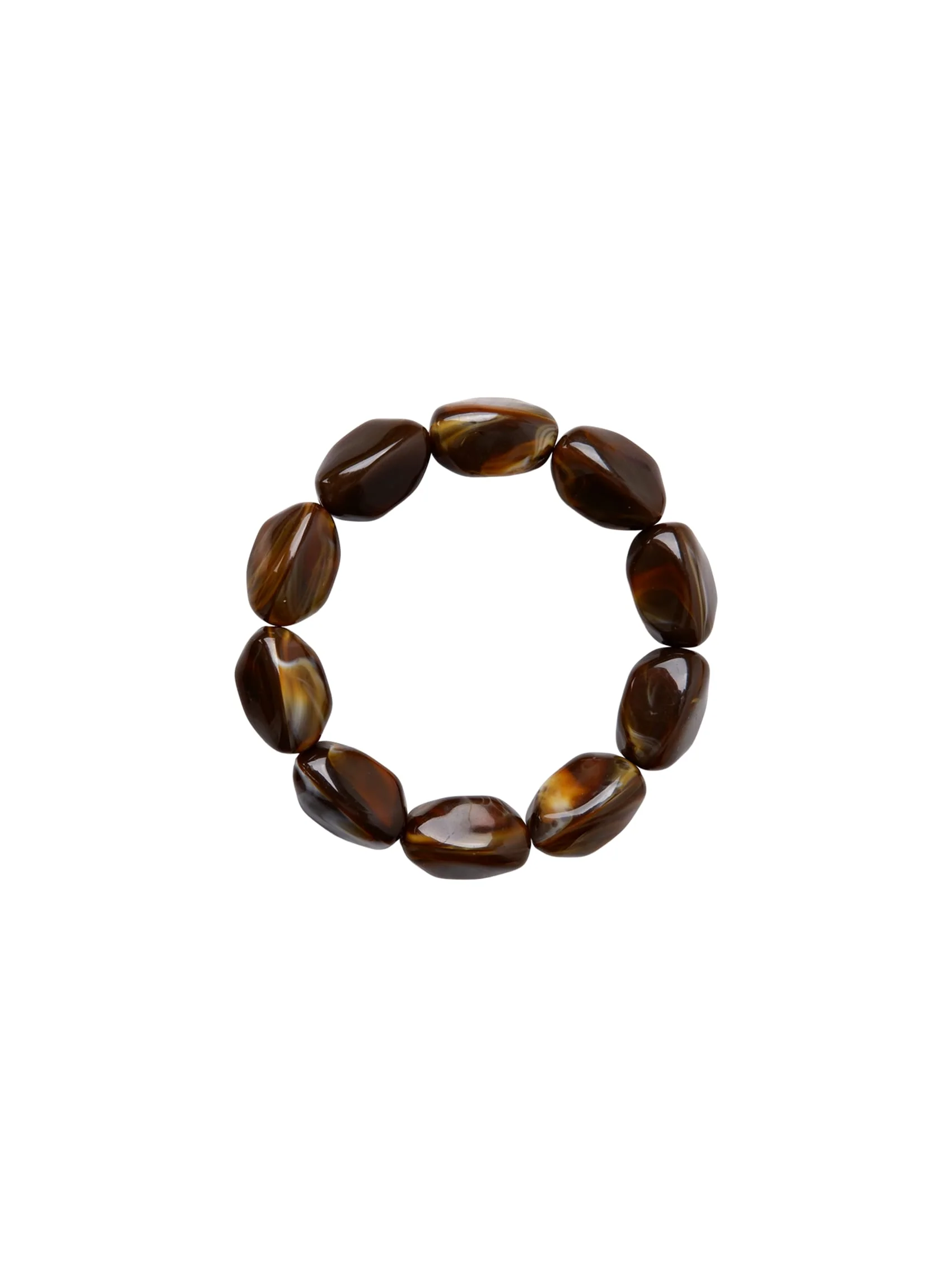 Lyon armbåndet er et elastisk armbånd med store, ovale perler i en smuk mocca-farve. Designet er enkelt og stilrent, perfekt til både hverdag og fest. Det elastiske design gør armbåndet nemt at tage af og på og sikrer en behagelig pasform.
