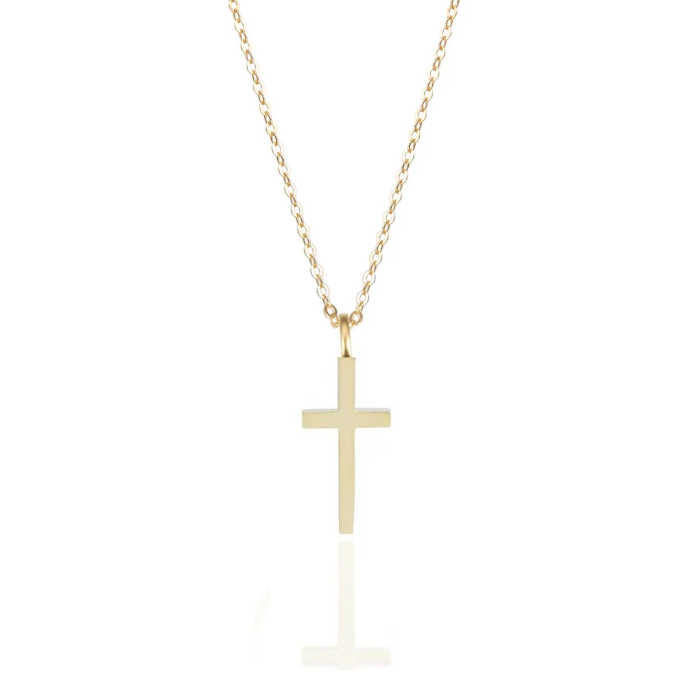 Enkel og smuk halskæde med klassisk kors-vedhæng i 14 karat guldbelagt 925 sterling sølv. Det minimalistiske design gør halskæden alsidig og tidløs – perfekt både alene og som en del af et lag-på-lag look med andre kæder.
