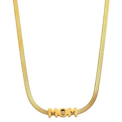 Elegant og personlig halskæde med flad snake chain og “MOM” bogstaver i midten – perfekt som gave til en mor, eller som en kærlig hyldest til moderskabet.