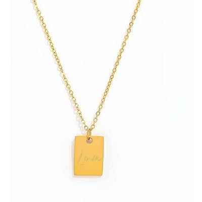Enkelt, elegant og fyldt med kærlighed. Love Necklace er en klassisk guldbelagt halskæde med et smukt rektangulært vedhæng, hvor ordet Love er nænsomt indgraveret. Perfekt som gave eller som en daglig reminder om det vigtigste i livet.