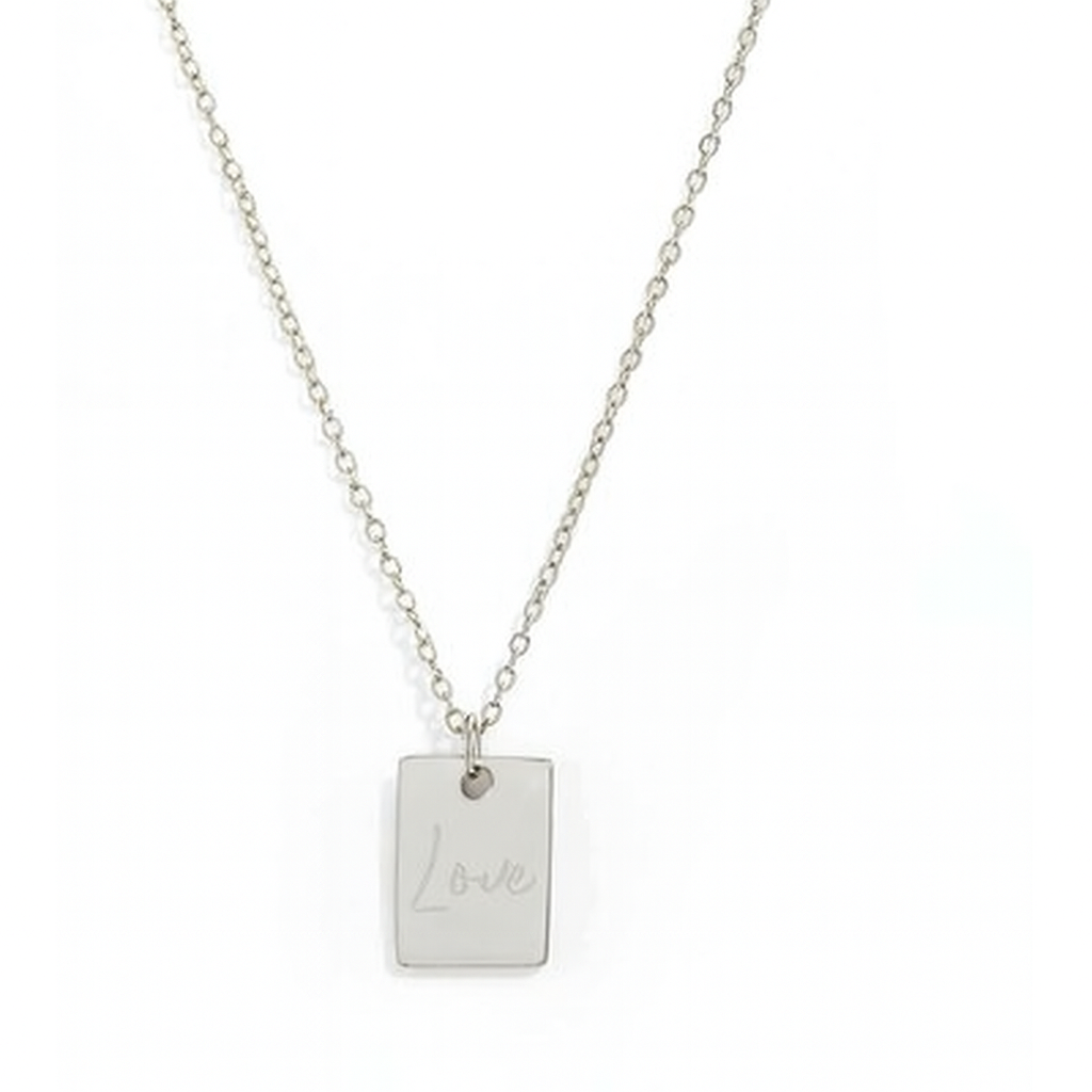 Enkelt, elegant og fyldt med kærlighed. Love Necklace er en klassisk sølvfarvet halskæde i rustfrit stål med et smukt rektangulært vedhæng, hvor ordet Love er nænsomt indgraveret. Perfekt som gave eller som en daglig reminder om det vigtigste i livet.