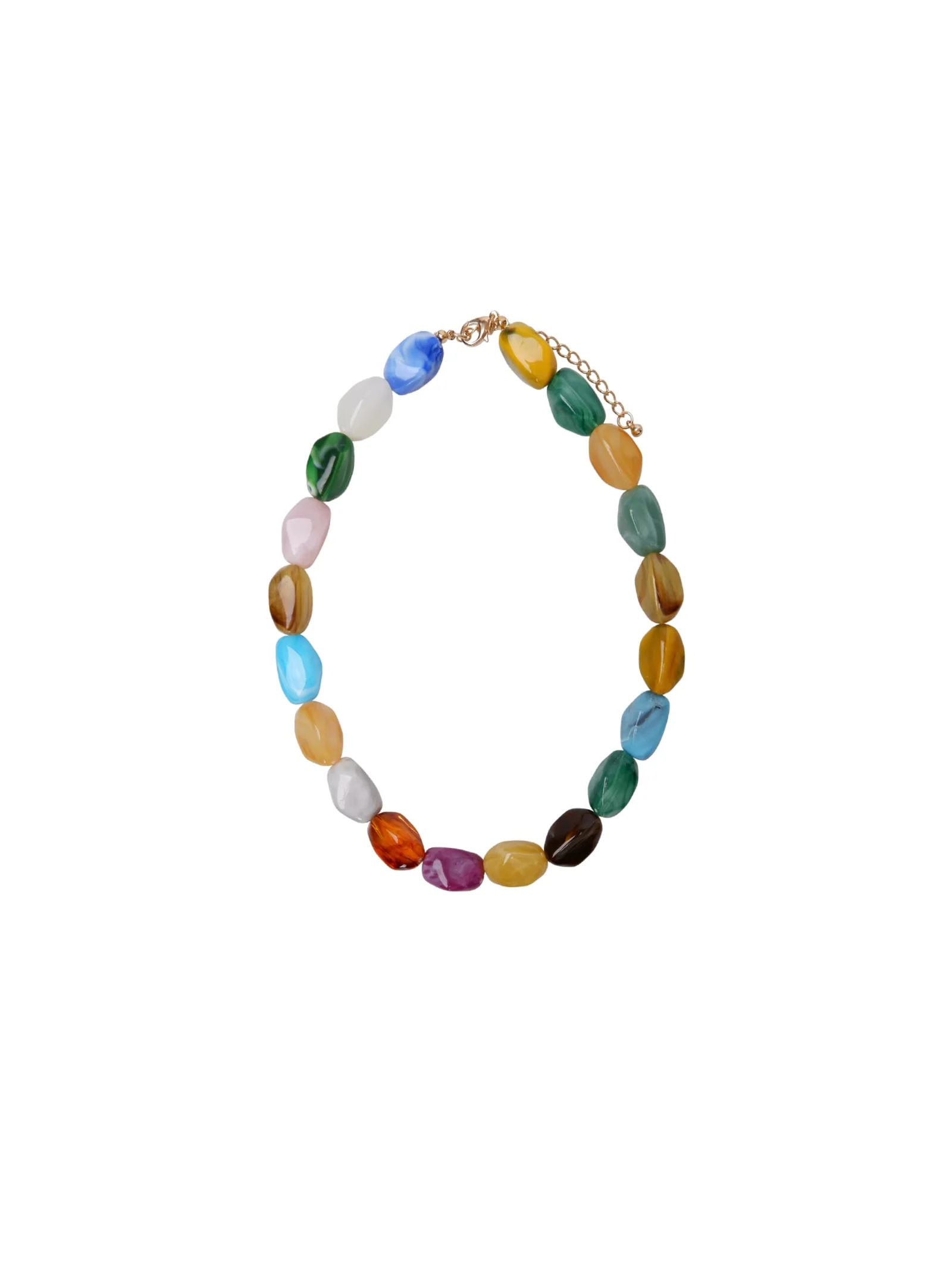Lyon halskæden er en chunky og farverig halskæde, der skiller sig ud med sine store perler i flere nuancer. Halskæden har en justerbar lukning, så den kan tilpasses dit look – perfekt både til hverdagsbrug og til at pifte et festoutfit op.